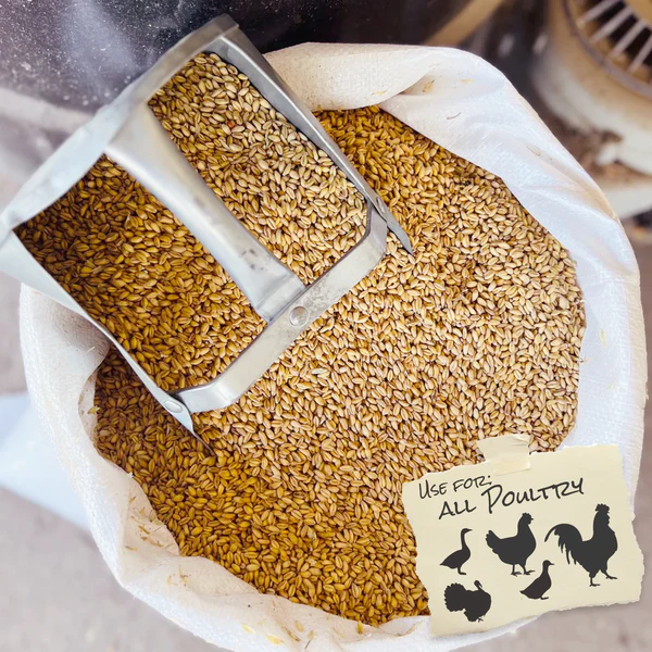 Wheat is most commonly fed to chickens and other poultry. In its whole grain form, it is ideal for long term storage.